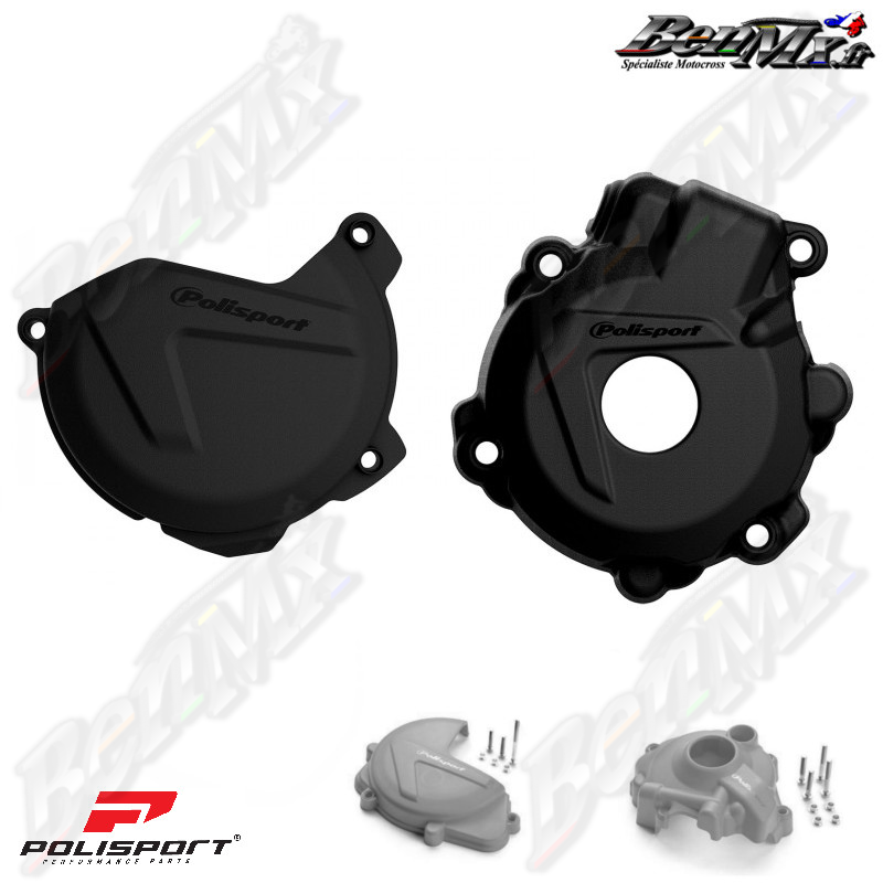Kit protections de carter moteur (allumage + embrayage) POLISPORT - Noir - KTM 250-350 EXC-F 2014/2016 - HUSQVARNA 250-350 FE 2014/2016