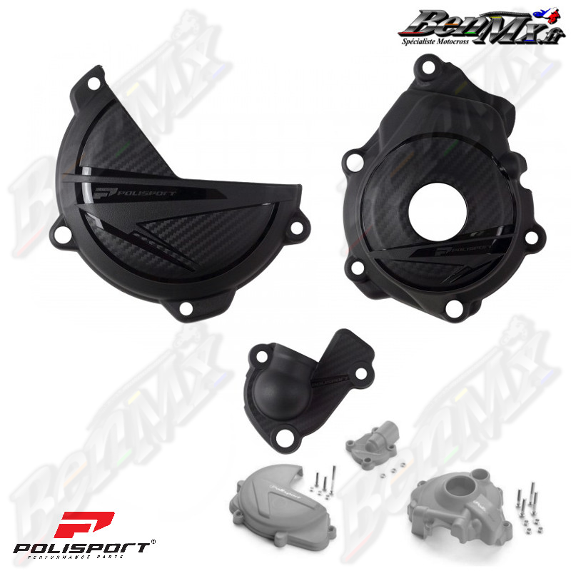 Kit protections de carter moteur (pompe à eau + allumage + embrayage) POLISPORT - Noir - KTM 250-350 SX-F 2023/2025 - HUSQVARNA 250-350 FC 2023/2025