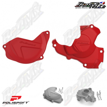 Kit protections de carter moteur (allumage + embrayage) POLISPORT - Rouge - HONDA 450 CRF 2010/2016