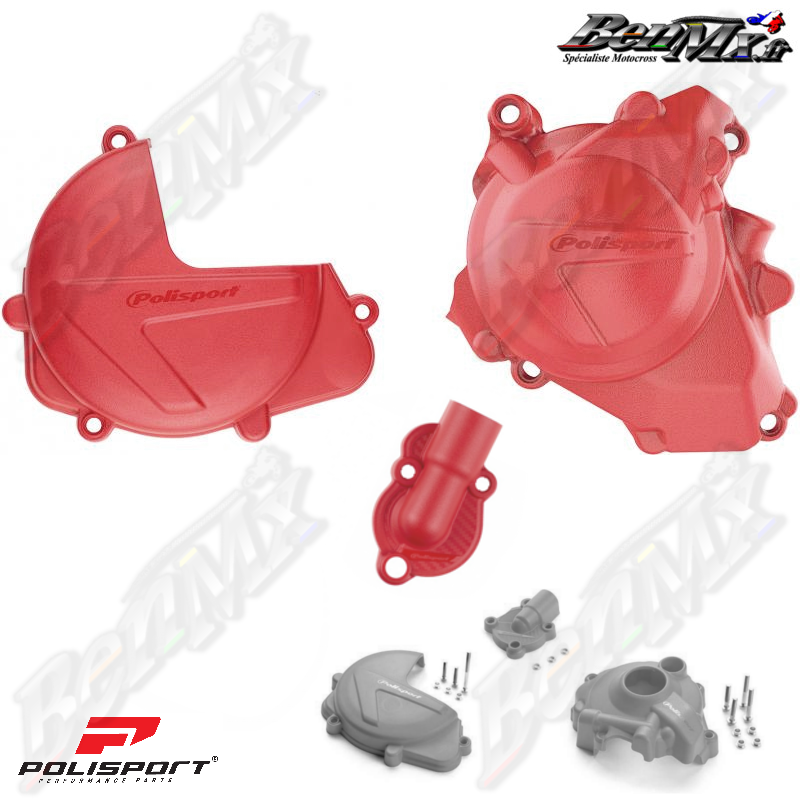 Kit protections de carter moteur (pompe à eau + allumage + embrayage) POLISPORT - Rouge - HONDA 450 CRF 2017/2023