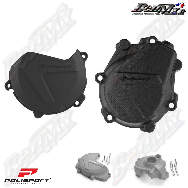 Kit protections de carter moteur (allumage + embrayage) POLISPORT - Noir - KTM 450 SX-F 2016/2022 - HUSQVARNA 450 FC 2016/2022
