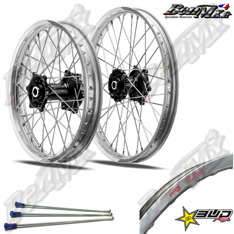 Roues complètes Bud Racing (avant+arrière) - Moyeux Noir - Jantes Argent - HONDA 125-250 CR 2002/2007 - 250 CRF 2004/2013 - 450 CRF 2002/2012