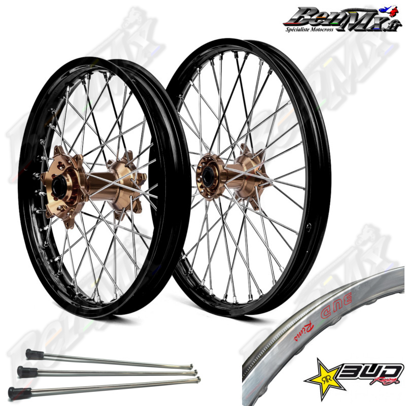 Roues complètes Bud Racing (avant+arrière) - Moyeux Bronze - Jantes Noir - KAWASAKI 125-250 KX 2006/2008 - 250-450 KXF 2006/2025
