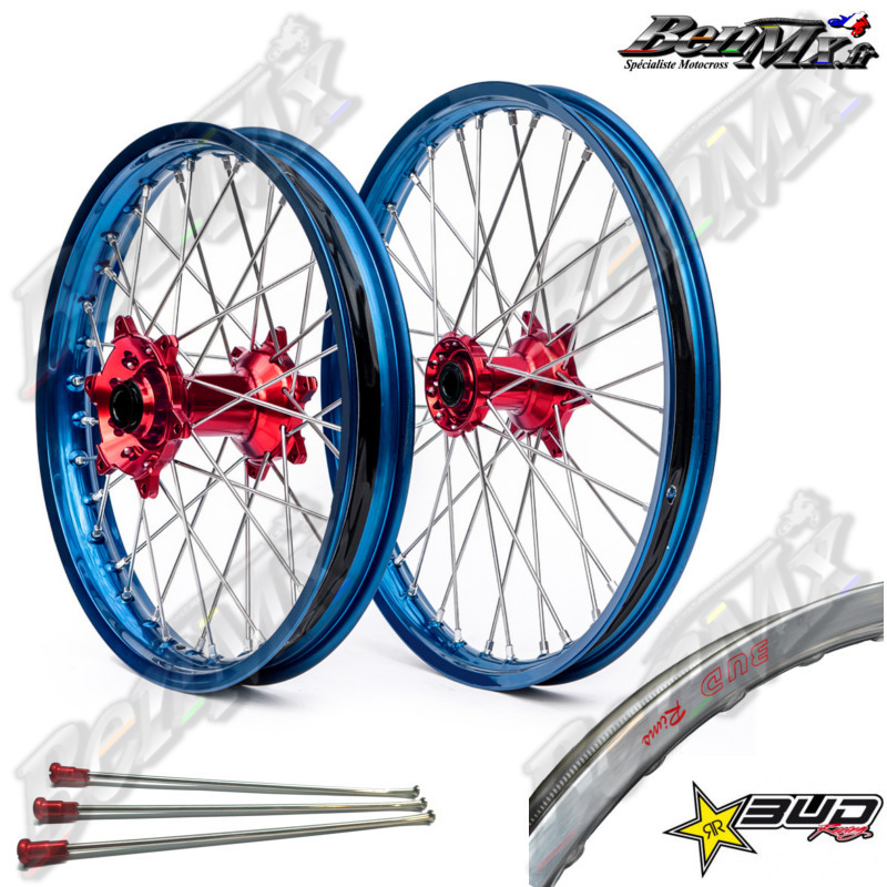 Roues complètes Bud Racing (avant+arrière) - Moyeux Rouge - Jantes Bleu - KTM / HUSQVARNA / GASGAS tous models à partir de 125cc Roues complètes Bud Racing (avant+arrière) - Moyeux Rouge - Jantes Bleu - KTM / HUSQVARNA / GASGAS tous models à partir de 125cc Roue arrière 2.15x19 pouces Roue avant 1.60x21 pouces Pour les modèles suivants: GAS GAS 125 MC 2021 GAS GAS 125 MC 2022 GAS GAS 125 MC 2023 GAS GAS 250 MC 2022 GAS GAS 250 MC 2023 GAS GAS 250 MCF 2021 GAS GAS 250 MCF 2022 GAS GAS 250 MCF 2023 GAS GAS 350 MCF 2023 GAS GAS 450 MCF 2021 GAS GAS 450 MCF 2022 GAS GAS 450 MCF 2023 KTM 125 SX 1998 KTM 125 SX 1999 KTM 125 SX 2000 KTM 125 SX 2001 KTM 125 SX 2002 KTM 125 SX 2003 KTM 125 SX 2004 KTM 125 SX 2005 KTM 125 SX 2006 KTM 125 SX 2007 KTM 125 SX 2008 KTM 125 SX 2009 KTM 125 SX 2010 KTM 125 SX 2011 KTM 125 SX 2012 KTM 125 SX 2013 KTM 125 SX 2014 KTM 125 SX 2015 KTM 125 SX 2016 KTM 125 SX 2017 KTM 125 SX 2018 KTM 125 SX 2019 KTM 125 SX 2020 KTM 125 SX 2021 KTM 125 SX 2022 KTM 125 SX 2023 KTM 150 SX 2009 KTM 150 SX 2010 KTM 150 SX 2011 KTM 150 SX 2012 KTM 150 SX 2013 KTM 150 SX 2014 KTM 150 SX 2015 KTM 150 SX 2016 KTM 150 SX 2017 KTM 150 SX 2018 KTM 150 SX 2019 KTM 150 SX 2020 KTM 150 SX 2021 KTM 150 SX 2022 KTM 150 SX 2023 KTM 250 SX 1999 KTM 250 SX 2000 KTM 250 SX 2001 KTM 250 SX 2002 KTM 250 SX 2003 KTM 250 SX 2004 KTM 250 SX 2005 KTM 250 SX 2006 KTM 250 SX 2007 KTM 250 SX 2008 KTM 250 SX 2009 KTM 250 SX 2010 KTM 250 SX 2011 KTM 250 SX 2012 KTM 250 SX 2013 KTM 250 SX 2014 KTM 250 SX 2015 KTM 250 SX 2016 KTM 250 SX 2017 KTM 250 SX 2018 KTM 250 SX 2019 KTM 250 SX 2020 KTM 250 SX 2021 KTM 250 SX 2022 KTM 250 SX 2023 KTM 250 SX-F 2003 KTM 250 SX-F 2004 KTM 250 SX-F 2005 KTM 250 SX-F 2006 KTM 250 SX-F 2007 KTM 250 SX-F 2008 KTM 250 SX-F 2009 KTM 250 SX-F 2010 KTM 250 SX-F 2011 KTM 250 SX-F 2012 KTM 250 SX-F 2013 KTM 250 SX-F 2014 KTM 250 SX-F 2015 KTM 250 SX-F 2016 KTM 250 SX-F 2017 KTM 250 SX-F 2018 KTM 250 SX-F 2019 KTM 250 SX-F 2020 KTM 250 SX-F 2021 KTM 250 SX-F 2022 KTM 250 SX-F 2023 KTM 350 SX-F 2010 KTM 350 SX-F 2011 KTM 350 SX-F 2012 KTM 350 SX-F 2013 KTM 350 SX-F 2014 KTM 350 SX-F 2015 KTM 350 SX-F 2016 KTM 350 SX-F 2017 KTM 350 SX-F 2018 KTM 350 SX-F 2019 KTM 350 SX-F 2020 KTM 350 SX-F 2021 KTM 350 SX-F 2022 KTM 350 SX-F 2023 KTM 450 SX-F 2003 KTM 450 SX-F 2004 KTM 450 SX-F 2005 KTM 450 SX-F 2006 KTM 450 SX-F 2007 KTM 450 SX-F 2008 KTM 450 SX-F 2009 KTM 450 SX-F 2010 KTM 450 SX-F 2011 KTM 450 SX-F 2012 KTM 450 SX-F 2013 KTM 450 SX-F 2014 KTM 450 SX-F 2015 KTM 450 SX-F 2016 KTM 450 SX-F 2017 KTM 450 SX-F 2018 KTM 450 SX-F 2019 KTM 450 SX-F 2020 KTM 450 SX-F 2021 KTM 450 SX-F 2022 KTM 450 SX-F 2023 HUSQVARNA 125 TC 2014 HUSQVARNA 125 TC 2015 HUSQVARNA 125 TC 2016 HUSQVARNA 125 TC 2017 HUSQVARNA 125 TC 2018 HUSQVARNA 125 TC 2019 HUSQVARNA 125 TC 2020 HUSQVARNA 125 TC 2021 HUSQVARNA 125 TC 2022 HUSQVARNA 125 TC 2023 HUSQVARNA 250 TC 2014 HUSQVARNA 250 TC 2015 HUSQVARNA 250 TC 2016 HUSQVARNA 250 TC 2017 HUSQVARNA 250 TC 2018 HUSQVARNA 250 TC 2019 HUSQVARNA 250 TC 2020 HUSQVARNA 250 TC 2021 HUSQVARNA 250 TC 2022 HUSQVARNA 250 TC 2023 HUSQVARNA 250 FC 2014 HUSQVARNA 250 FC 2015 HUSQVARNA 250 FC 2016 HUSQVARNA 250 FC 2017 HUSQVARNA 250 FC 2018 HUSQVARNA 250 FC 2019 HUSQVARNA 250 FC 2020 HUSQVARNA 250 FC 2021 HUSQVARNA 250 FC 2022 HUSQVARNA 250 FC 2023 HUSQVARNA 350 FC 2014 HUSQVARNA 350 FC 2015 HUSQVARNA 350 FC 2016 HUSQVARNA 350 FC 2017 HUSQVARNA 350 FC 2018 HUSQVARNA 350 FC 2019 HUSQVARNA 350 FC 2020 HUSQVARNA 350 FC 2021 HUSQVARNA 350 FC 2022 HUSQVARNA 350 FC 2023 HUSQVARNA 450 FC 2014 HUSQVARNA 450 FC 2015 HUSQVARNA 450 FC 2016 HUSQVARNA 450 FC 2017 HUSQVARNA 450 FC 2018 HUSQVARNA 450 FC 2019 HUSQVARNA 450 FC 2020 HUSQVARNA 450 FC 2021 HUSQVARNA 450 FC 2022 HUSQVARNA 450 FC 2023 KTM 125 SX 2024 KTM 125 SX 2025 KTM 150 SX 2024 KTM 150 SX 2025 KTM 250 SX 2024 KTM 250 SX 2025 KTM 250 SX-F 2024 KTM 250 SX-F 2025 KTM 350 SX-F 2024 KTM 350 SX-F 2025 KTM 450 SX-F 2024 KTM 450 SX-F 2025 HUSQVARNA 125 TC 2024 HUSQVARNA 125 TC 2025 HUSQVARNA 250 TC 2024 HUSQVARNA 250 TC 2025 HUSQVARNA 250 FC 2024 HUSQVARNA 250 FC 2025 HUSQVARNA 350 FC 2024 HUSQVARNA 350 FC 2025 HUSQVARNA 450 FC 2024 HUSQVARNA 450 FC 2025 GAS GAS 125 MC 2024 GAS GAS 125 MC 2025 GAS GAS 250 MC 2024 GAS GAS 250 MC 2025 GAS GAS 250 MCF 2024 GAS GAS 250 MCF 2025 GAS GAS 350 MCF 2024 GAS GAS 350 MCF 2025 GAS GAS 450 MCF 2024 GAS GAS 450 MCF 2025