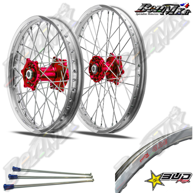 Roues complètes Bud Racing (avant+arrière) - Moyeux Rouge - Jantes Argent - KTM / HUSQVARNA / GASGAS tous models à partir de 125cc Roues complètes Bud Racing (avant+arrière) - Moyeux Rouge - Jantes Argent - KTM / HUSQVARNA / GASGAS tous models à partir de 125cc Roue arrière 2.15x19 pouces Roue avant 1.60x21 pouces Pour les modèles suivants: GAS GAS 125 MC 2021 GAS GAS 125 MC 2022 GAS GAS 125 MC 2023 GAS GAS 250 MC 2022 GAS GAS 250 MC 2023 GAS GAS 250 MCF 2021 GAS GAS 250 MCF 2022 GAS GAS 250 MCF 2023 GAS GAS 350 MCF 2023 GAS GAS 450 MCF 2021 GAS GAS 450 MCF 2022 GAS GAS 450 MCF 2023 KTM 125 SX 1998 KTM 125 SX 1999 KTM 125 SX 2000 KTM 125 SX 2001 KTM 125 SX 2002 KTM 125 SX 2003 KTM 125 SX 2004 KTM 125 SX 2005 KTM 125 SX 2006 KTM 125 SX 2007 KTM 125 SX 2008 KTM 125 SX 2009 KTM 125 SX 2010 KTM 125 SX 2011 KTM 125 SX 2012 KTM 125 SX 2013 KTM 125 SX 2014 KTM 125 SX 2015 KTM 125 SX 2016 KTM 125 SX 2017 KTM 125 SX 2018 KTM 125 SX 2019 KTM 125 SX 2020 KTM 125 SX 2021 KTM 125 SX 2022 KTM 125 SX 2023 KTM 150 SX 2009 KTM 150 SX 2010 KTM 150 SX 2011 KTM 150 SX 2012 KTM 150 SX 2013 KTM 150 SX 2014 KTM 150 SX 2015 KTM 150 SX 2016 KTM 150 SX 2017 KTM 150 SX 2018 KTM 150 SX 2019 KTM 150 SX 2020 KTM 150 SX 2021 KTM 150 SX 2022 KTM 150 SX 2023 KTM 250 SX 1999 KTM 250 SX 2000 KTM 250 SX 2001 KTM 250 SX 2002 KTM 250 SX 2003 KTM 250 SX 2004 KTM 250 SX 2005 KTM 250 SX 2006 KTM 250 SX 2007 KTM 250 SX 2008 KTM 250 SX 2009 KTM 250 SX 2010 KTM 250 SX 2011 KTM 250 SX 2012 KTM 250 SX 2013 KTM 250 SX 2014 KTM 250 SX 2015 KTM 250 SX 2016 KTM 250 SX 2017 KTM 250 SX 2018 KTM 250 SX 2019 KTM 250 SX 2020 KTM 250 SX 2021 KTM 250 SX 2022 KTM 250 SX 2023 KTM 250 SX-F 2003 KTM 250 SX-F 2004 KTM 250 SX-F 2005 KTM 250 SX-F 2006 KTM 250 SX-F 2007 KTM 250 SX-F 2008 KTM 250 SX-F 2009 KTM 250 SX-F 2010 KTM 250 SX-F 2011 KTM 250 SX-F 2012 KTM 250 SX-F 2013 KTM 250 SX-F 2014 KTM 250 SX-F 2015 KTM 250 SX-F 2016 KTM 250 SX-F 2017 KTM 250 SX-F 2018 KTM 250 SX-F 2019 KTM 250 SX-F 2020 KTM 250 SX-F 2021 KTM 250 SX-F 2022 KTM 250 SX-F 2023 KTM 350 SX-F 2010 KTM 350 SX-F 2011 KTM 350 SX-F 2012 KTM 350 SX-F 2013 KTM 350 SX-F 2014 KTM 350 SX-F 2015 KTM 350 SX-F 2016 KTM 350 SX-F 2017 KTM 350 SX-F 2018 KTM 350 SX-F 2019 KTM 350 SX-F 2020 KTM 350 SX-F 2021 KTM 350 SX-F 2022 KTM 350 SX-F 2023 KTM 450 SX-F 2003 KTM 450 SX-F 2004 KTM 450 SX-F 2005 KTM 450 SX-F 2006 KTM 450 SX-F 2007 KTM 450 SX-F 2008 KTM 450 SX-F 2009 KTM 450 SX-F 2010 KTM 450 SX-F 2011 KTM 450 SX-F 2012 KTM 450 SX-F 2013 KTM 450 SX-F 2014 KTM 450 SX-F 2015 KTM 450 SX-F 2016 KTM 450 SX-F 2017 KTM 450 SX-F 2018 KTM 450 SX-F 2019 KTM 450 SX-F 2020 KTM 450 SX-F 2021 KTM 450 SX-F 2022 KTM 450 SX-F 2023 HUSQVARNA 125 TC 2014 HUSQVARNA 125 TC 2015 HUSQVARNA 125 TC 2016 HUSQVARNA 125 TC 2017 HUSQVARNA 125 TC 2018 HUSQVARNA 125 TC 2019 HUSQVARNA 125 TC 2020 HUSQVARNA 125 TC 2021 HUSQVARNA 125 TC 2022 HUSQVARNA 125 TC 2023 HUSQVARNA 250 TC 2014 HUSQVARNA 250 TC 2015 HUSQVARNA 250 TC 2016 HUSQVARNA 250 TC 2017 HUSQVARNA 250 TC 2018 HUSQVARNA 250 TC 2019 HUSQVARNA 250 TC 2020 HUSQVARNA 250 TC 2021 HUSQVARNA 250 TC 2022 HUSQVARNA 250 TC 2023 HUSQVARNA 250 FC 2014 HUSQVARNA 250 FC 2015 HUSQVARNA 250 FC 2016 HUSQVARNA 250 FC 2017 HUSQVARNA 250 FC 2018 HUSQVARNA 250 FC 2019 HUSQVARNA 250 FC 2020 HUSQVARNA 250 FC 2021 HUSQVARNA 250 FC 2022 HUSQVARNA 250 FC 2023 HUSQVARNA 350 FC 2014 HUSQVARNA 350 FC 2015 HUSQVARNA 350 FC 2016 HUSQVARNA 350 FC 2017 HUSQVARNA 350 FC 2018 HUSQVARNA 350 FC 2019 HUSQVARNA 350 FC 2020 HUSQVARNA 350 FC 2021 HUSQVARNA 350 FC 2022 HUSQVARNA 350 FC 2023 HUSQVARNA 450 FC 2014 HUSQVARNA 450 FC 2015 HUSQVARNA 450 FC 2016 HUSQVARNA 450 FC 2017 HUSQVARNA 450 FC 2018 HUSQVARNA 450 FC 2019 HUSQVARNA 450 FC 2020 HUSQVARNA 450 FC 2021 HUSQVARNA 450 FC 2022 HUSQVARNA 450 FC 2023 KTM 125 SX 2024 KTM 125 SX 2025 KTM 150 SX 2024 KTM 150 SX 2025 KTM 250 SX 2024 KTM 250 SX 2025 KTM 250 SX-F 2024 KTM 250 SX-F 2025 KTM 350 SX-F 2024 KTM 350 SX-F 2025 KTM 450 SX-F 2024 KTM 450 SX-F 2025 HUSQVARNA 125 TC 2024 HUSQVARNA 125 TC 2025 HUSQVARNA 250 TC 2024 HUSQVARNA 250 TC 2025 HUSQVARNA 250 FC 2024 HUSQVARNA 250 FC 2025 HUSQVARNA 350 FC 2024 HUSQVARNA 350 FC 2025 HUSQVARNA 450 FC 2024 HUSQVARNA 450 FC 2025 GAS GAS 125 MC 2024 GAS GAS 125 MC 2025 GAS GAS 250 MC 2024 GAS GAS 250 MC 2025 GAS GAS 250 MCF 2024 GAS GAS 250 MCF 2025 GAS GAS 350 MCF 2024 GAS GAS 350 MCF 2025 GAS GAS 450 MCF 2024 GAS GAS 450 MCF 2025