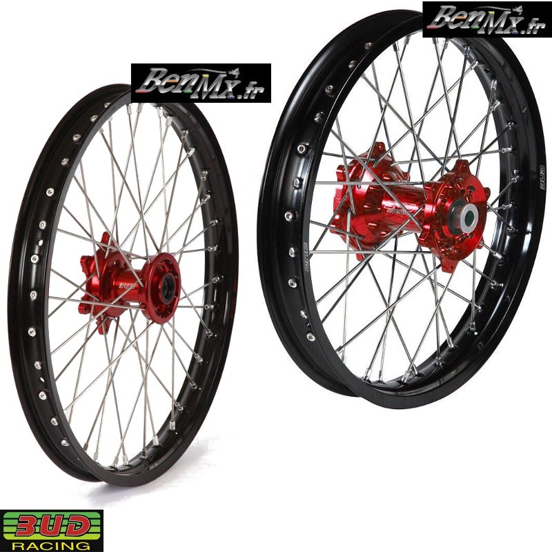 Roues Avant+Arrière 19" et 21" Bud Racing Rouge/ Noir - HONDA 250 CRF 2014/2025 - 450 CRF 2013/2025