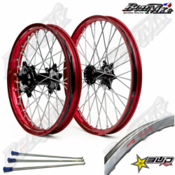 Roues complètes Bud Racing (avant+arrière) - Moyeux Noir - Jantes Rouge - HONDA 250 CRF 2014/2025 - 450 CRF 2013/2025