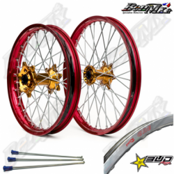 Roues complètes Bud Racing (avant+arrière) - Moyeux Or - Jantes Rouge - HONDA 250 CRF 2014/2025 - 450 CRF 2013/2025