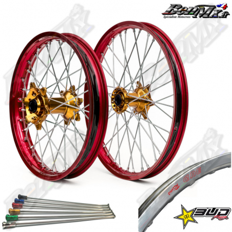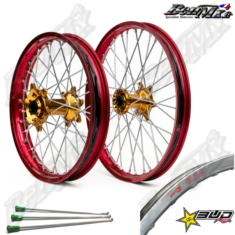 Roues complètes Bud Racing (avant+arrière) - Moyeux Or - Jantes Rouge -