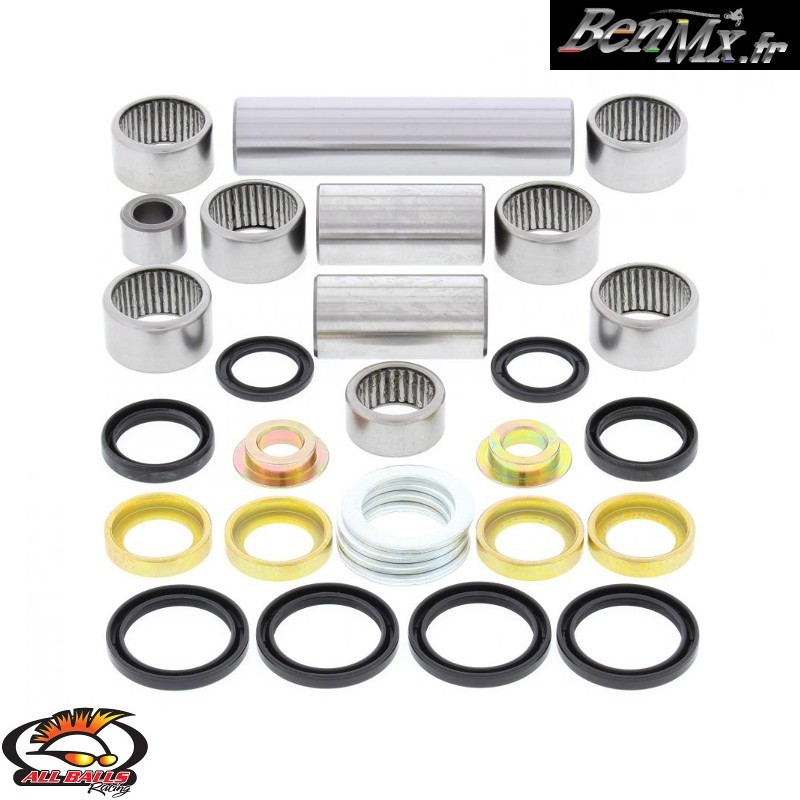 Le kit de roulements de biellettes de suspension ALL BALLS Racing est composé des éléments présentés sur la photo de la fiche produit
