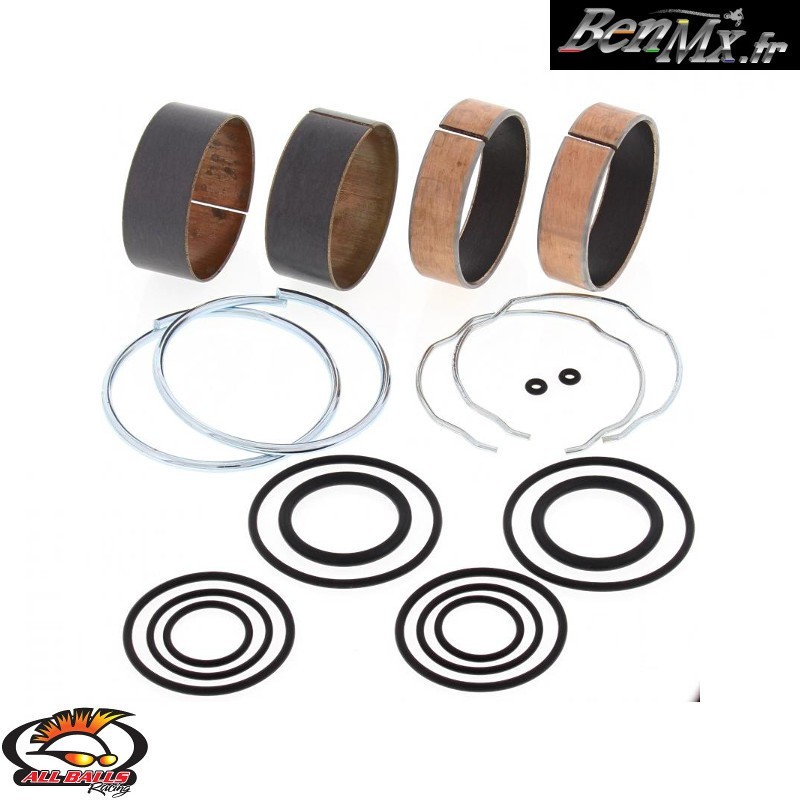 Il comprend généralement: - Les bagues de friction traitement interne TI - Les bagues de friction traitement externe TE - Les clips de maintien de joint spy de fourche - Les clips de protection de fourreaux - Les rondelles cuivres de bouchon de fourche - Nombreux joints toriques