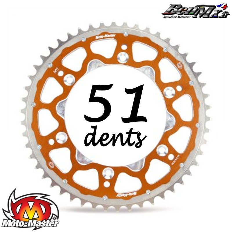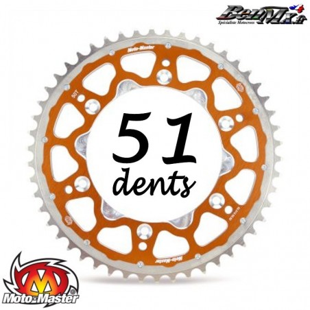 Couronne Acier/Alu Fusion MOTO-MASTER - Orange - 51 dents - KTM / HUSQVARNA / GASGAS de 125cc à 500cc