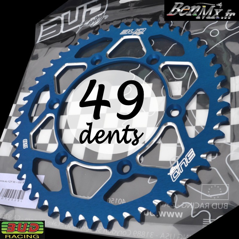 Couronne Alu BUD RACING - Bleu - 49 dents - YAMAHA 125-250 YZ 1999/2025 - YAMAHA 250-450 YZF 2001/2025