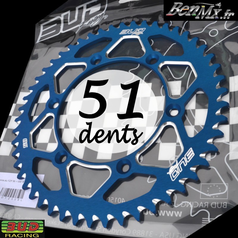 Couronne Alu BUD RACING - Bleu - 51 dents - YAMAHA 125-250 YZ 1999/2025 - YAMAHA 250-450 YZF 2001/2025