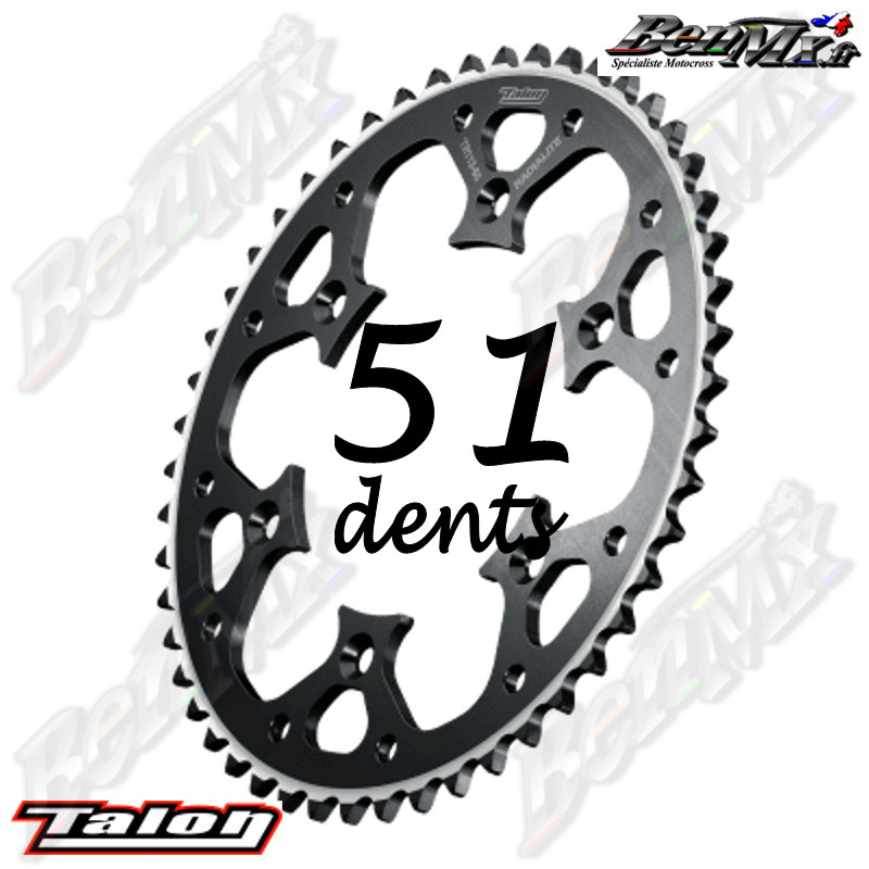 Couronne Alu TALON - Noir - 51 dents - YAMAHA 125-250 YZ 1999/2025 - YAMAHA 250-450 YZF 2001/2025 - ref:TR339RL52051BK
