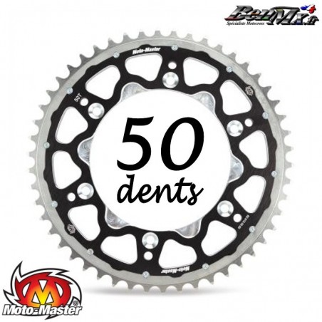 Couronne Acier/Alu Moto-Master Fusion Noir 50 dents - HUSQVARNA 250 TE 2003/2013 Bague extérieure en acier spécial trempé et nickelé. Survit à un pignon en aluminium jusqu'à 3 fois 50% de poids en moins par rapport à un pignon en acier normal. Support en aluminium 7075-T6 de qualité aéronautique. La bague extérieure et le support de transport sont fabriqués avec précision en utilisant une procédure de thermorétrécissement spécialisée. Le support est revêtu d'une couleur anodisée pour une durabilité accrue. Conçu en CAO, usiné CNC et découpé au laser en utilisant une technologie de pointe.
