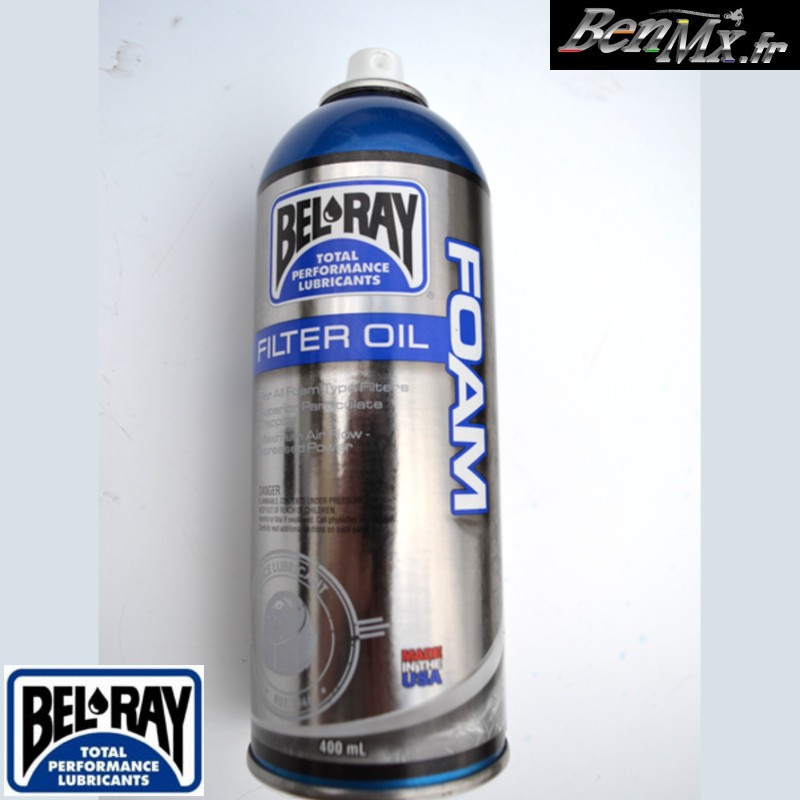 > L'huile pour filtre à mousse Bel-Ray est une huile pour filtre à air en aérosol pour toutes les applications de filtre à air en mousse motocross