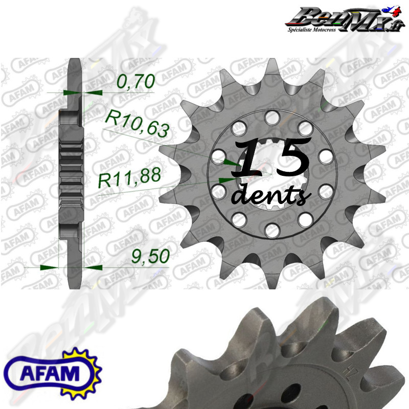 Pignon sortie de boite AFAM Self Cleaning - 15 dents - HONDA 250 CR 1988/2007 - HONDA 250 CRF 2022/2025 - HONDA 450 CRF 2002/2025