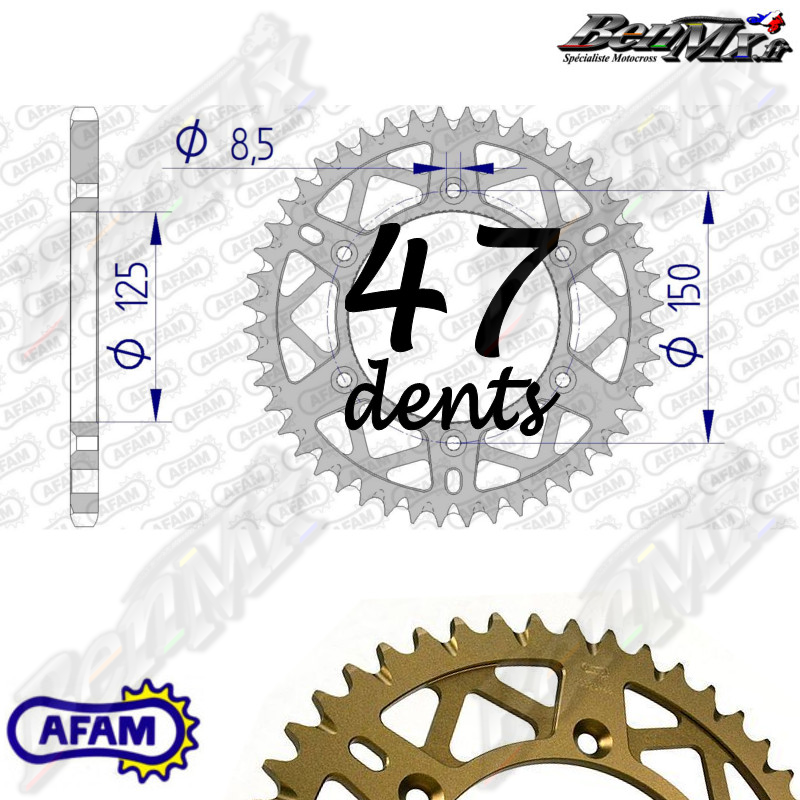 Couronne Alu AFAM Self Cleaning - Anodisation Hard - 47 dents - KTM/HUSQVARNA/GASGAS de 125cc à 500cc
