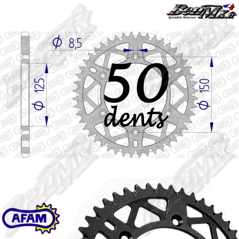 Couronne Alu AFAM Self Cleaning - Noir - 50 dents - KTM/HUSQVARNA/GASGAS de 125cc à 500cc