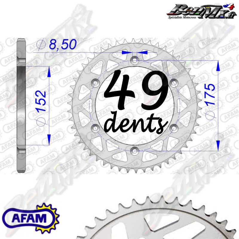 Couronne Alu AFAM Standard - Argent - 49 dents - YAMAHA 125-250 YZ 1987/1998