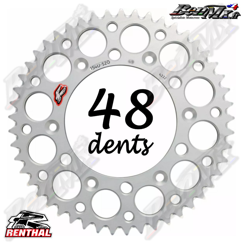 Couronne Alu RENTHAL - Argent - 48 dents - KTM 85 SX 2004/2025 - HUSQVARNA 85 TC 2014/2025 - GASGAS 85 MC 2021/2025 - ref:441U-428-48GPSI
