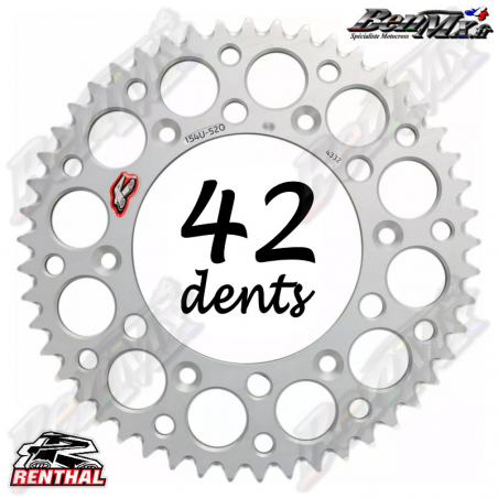 Couronne Alu RENTHAL - Argent - 42 dents - YAMAHA 125-250 YZ 1999/2025 - YAMAHA 250-450 YZF 2001/2025 - ref:150U-520-42GBSI