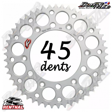 Couronne Alu RENTHAL - Argent - 45 dents - YAMAHA 125-250 YZ 1999/2025 - YAMAHA 250-450 YZF 2001/2025 - ref:150U-520-45GBSI
