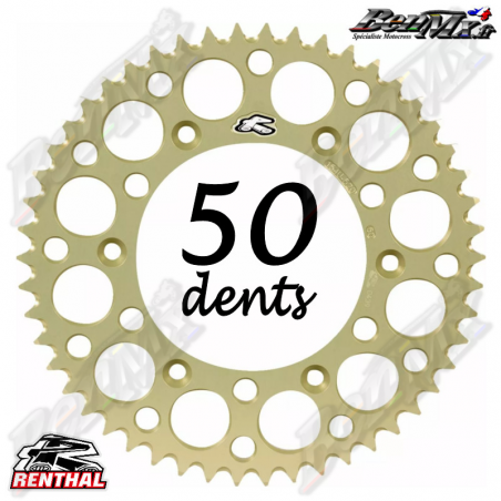 Couronne Alu RENTHAL - Anodisation Hard - 50 dents - YAMAHA 125-250 YZ 1999/2025 - YAMAHA 250-450 YZF 2001/2025 - ref:150U-520-50GBHA