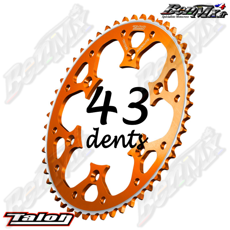 Couronne Alu TALON - Orange - 43 dents - KTM / HUSQVARNA / GASGAS de 125cc à 500cc - ref:TR130RL52043OR