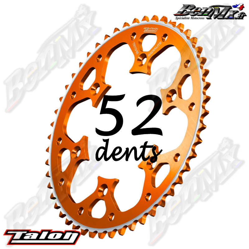 Couronne Alu TALON - Orange - 52 dents - KTM / HUSQVARNA / GASGAS de 125cc à 500cc - ref:TR130RL52052O